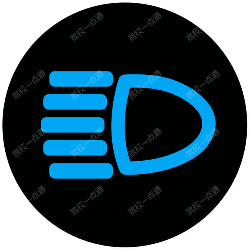 本题考点为指示灯图中仪表板上的灯,光线为蓝色向左平行线,是远光灯蓝色光束直射向左是远光,绿色光束斜射左下是近光