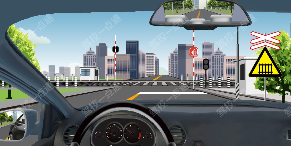 图中右侧是多股铁路与道路相交,标志内见到一个错一个^,表示多股铁路与道路相交