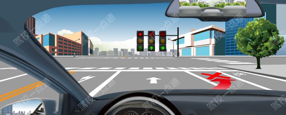 图中箭头方向是白色实线,不允许跨越,变更车道需要在虚线处变更