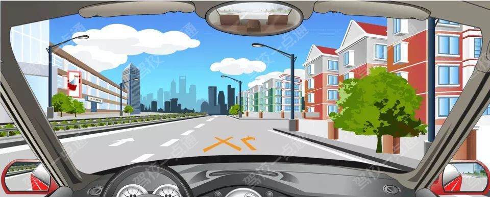 图中路面上的黄色标记是禁止右转弯,不允许车辆向右转弯。