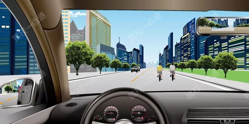 图中遇到同向行驶的非机动车应注意观察,保持安全距离,适当减速慢行前方有非机动车行驶,加速超越肯定是不对的
