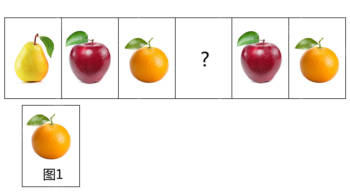 图中找规律,从左到右是梨、苹果、橘子问号位置应该是梨,因此本题错误
